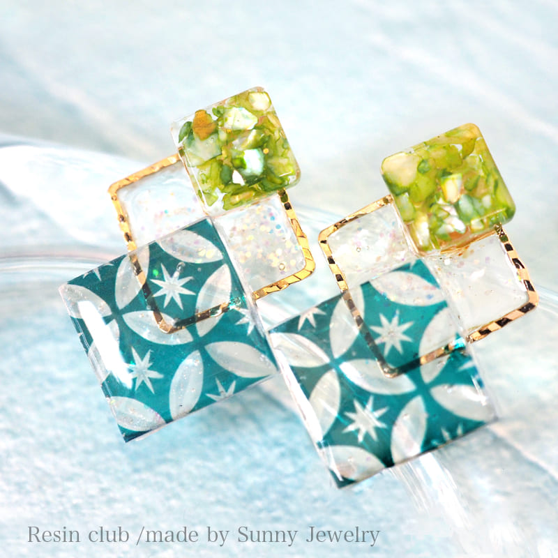 【レジンクラブ】レジン封入シール 『切子 緑』 ★両面タイプ★
